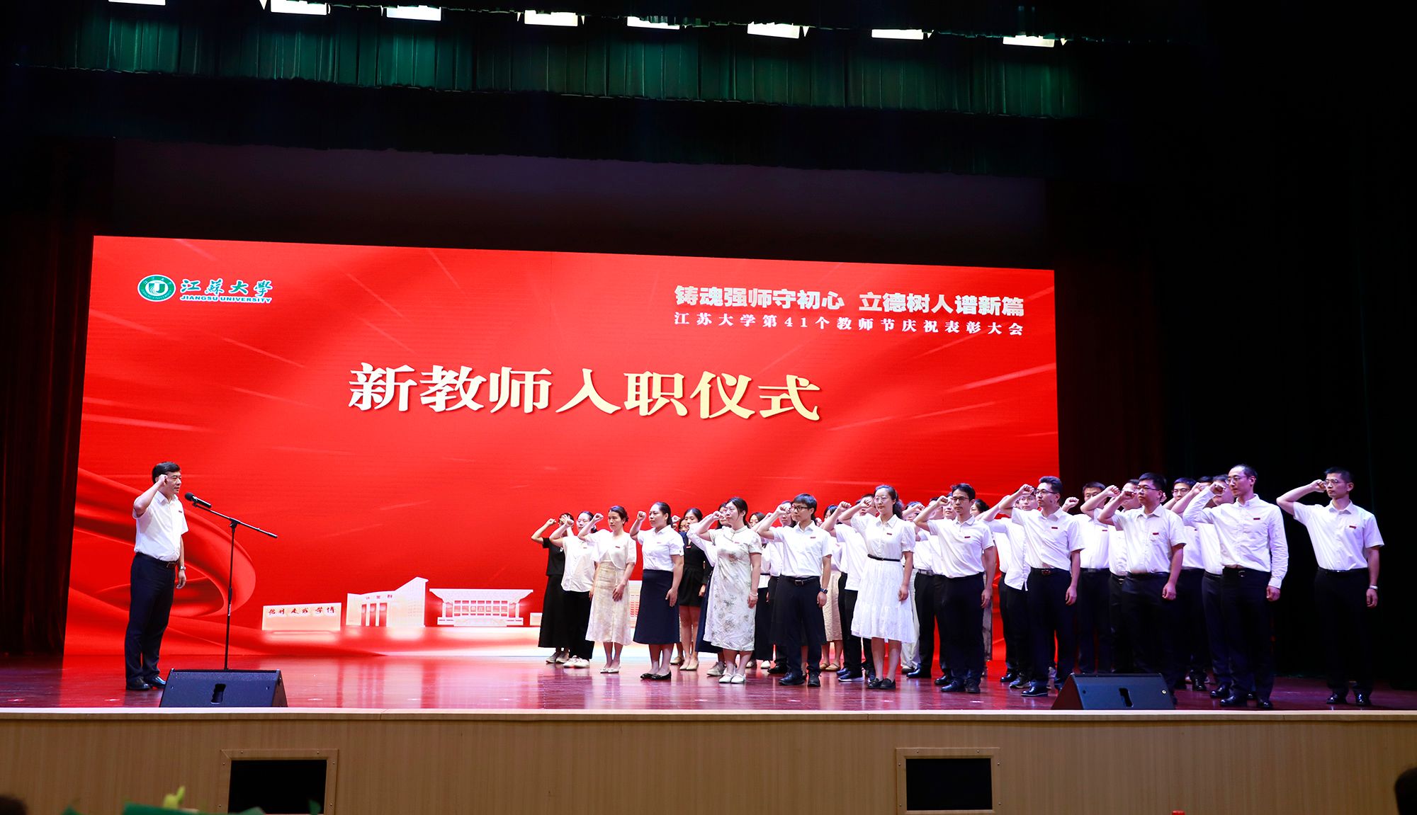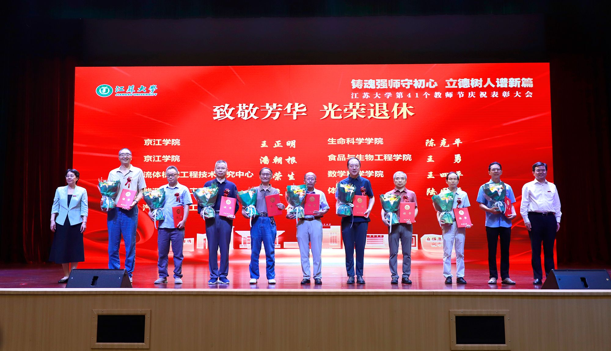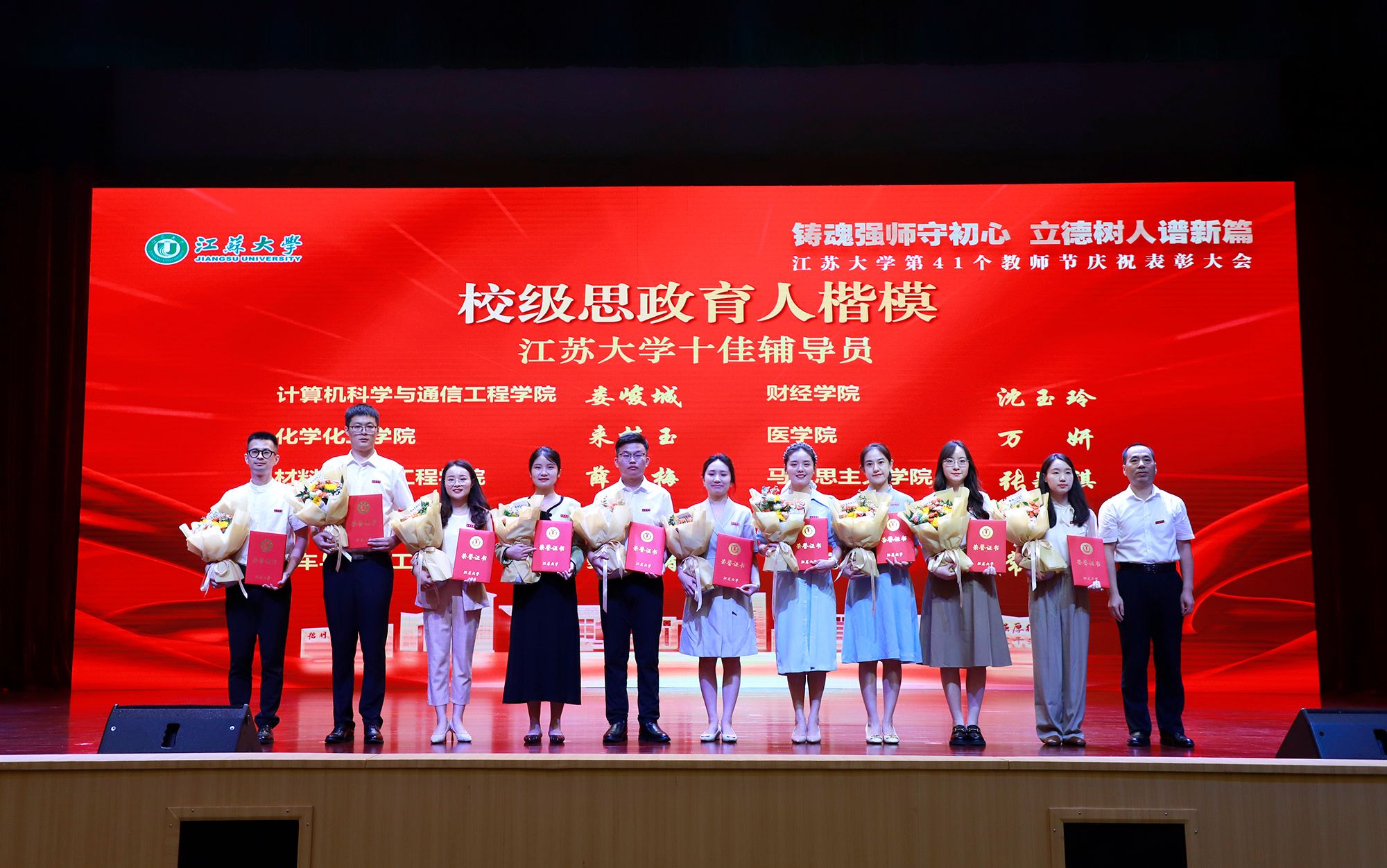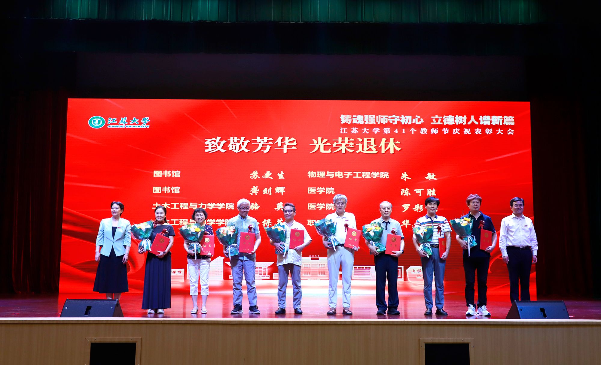 9月8日,学校举行第41个教师节庆祝表彰大会,贯彻全国教育大会精神,进一步营造尊师重教、尊重人才的良好氛围。校党委书记李洪波,校长邢卫红,校党委副书记张济建,副校长陈红,校党委常委、副校长邹小波,校党委常委、副校长王景全,校党委常委、纪委书记、派驻监察专员杜永春,校党委常委、组织部部长杨敬江,校党委常委、宣传部部长、统战部部长吴麟麟等出席大会。张济建主持大会。