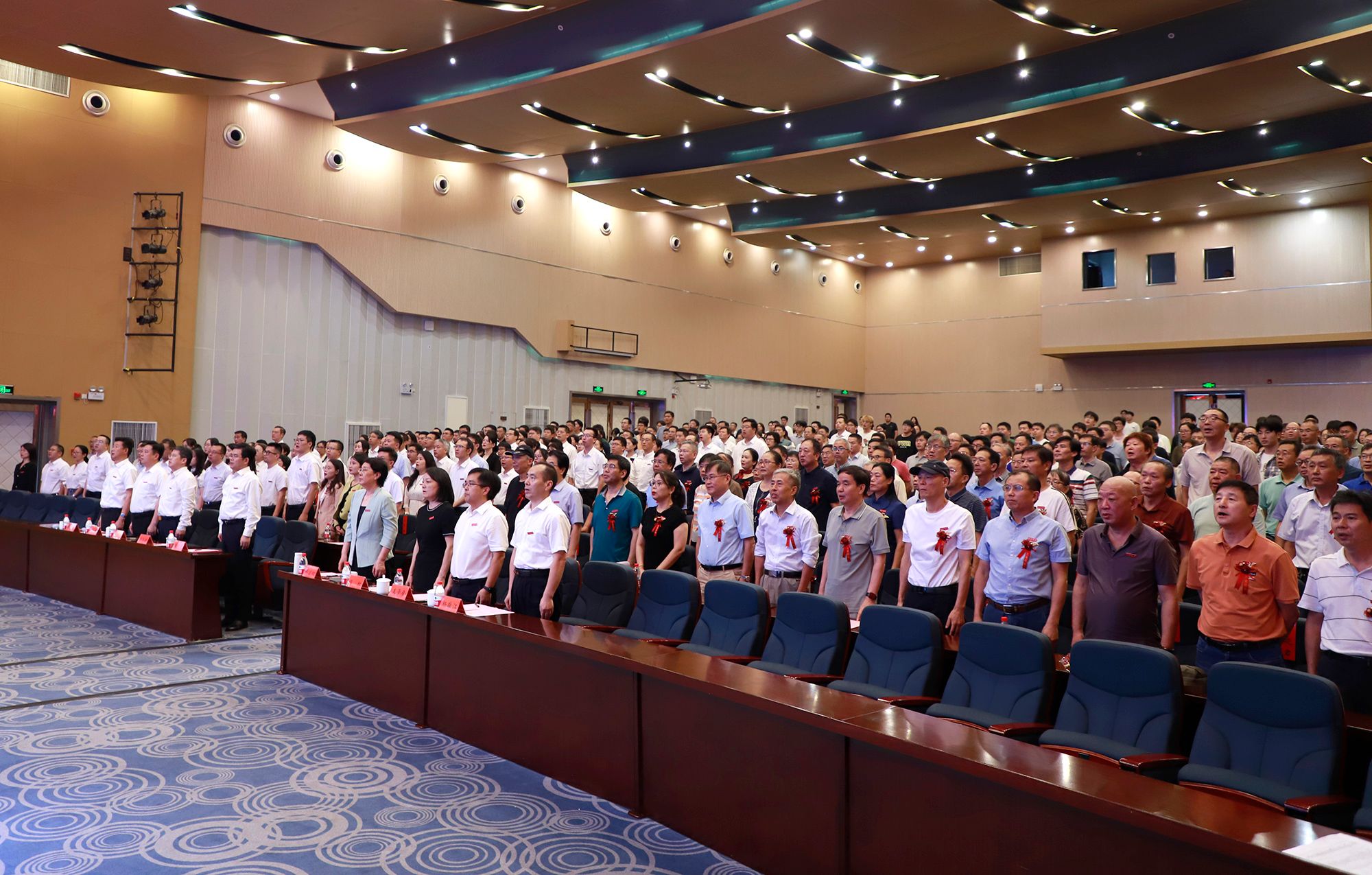 全体起立,奏唱国歌。