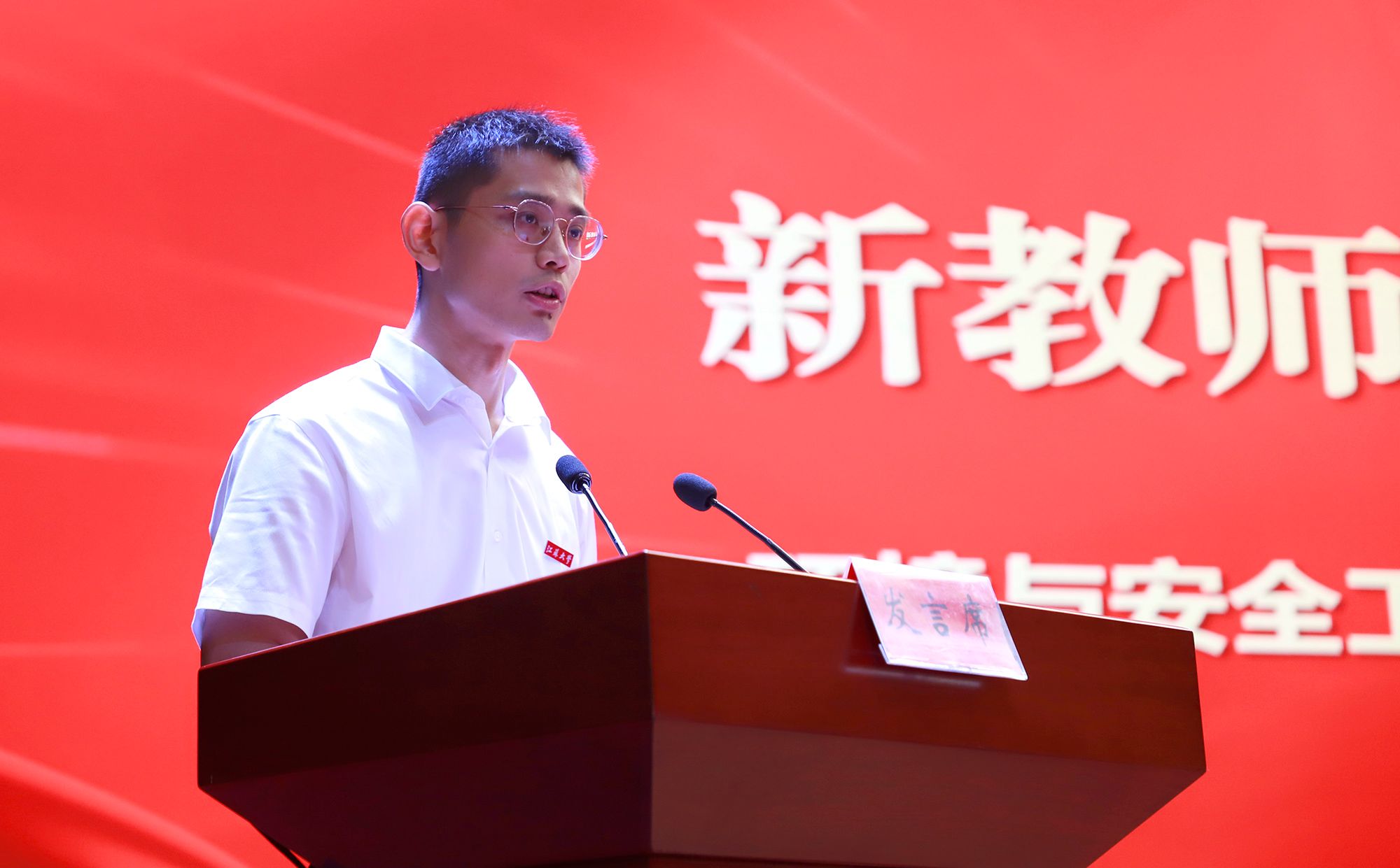 大会举行了2025年新教师入职、入工会仪式。党委教师工作部部长、人事处处长王飞,校工会常务副主席王善民分别带领新教师在入职仪式和入工会仪式上宣誓。环境与安全工程学院教师张立代表新教师发言。