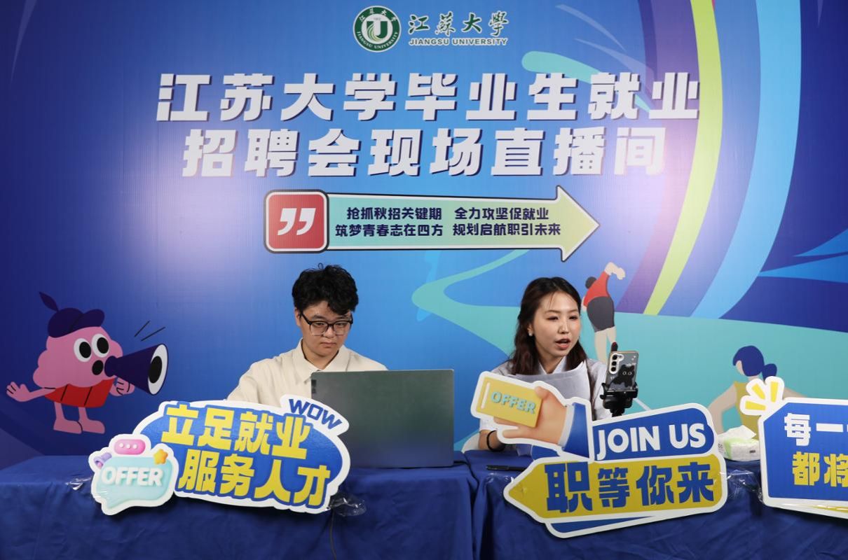 招聘首次融合直播带岗形式,现场设置了线上直播间,向毕业生直播介绍就业政策、推介就业岗位、指导就业防诈。