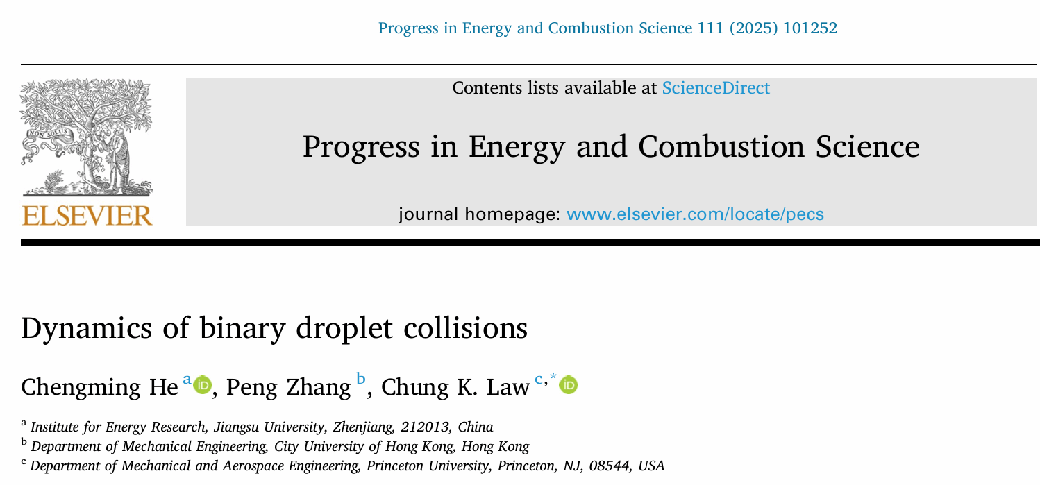 近日,能源研究院金山青年特聘教授何成明联合香港城市大学副教授张鹏及美国国家工程院院士、普林斯顿大学教授Chung K. Law在能源领域国际顶级期刊Progress in Energy and Combustion Science上发表题为Dynamics of binary droplet collisions(《二元液滴碰撞动力学》)的综述论文。beat365英国官网网站为第一完成单位,也是学校首次在该能源领域顶刊上发表文章。