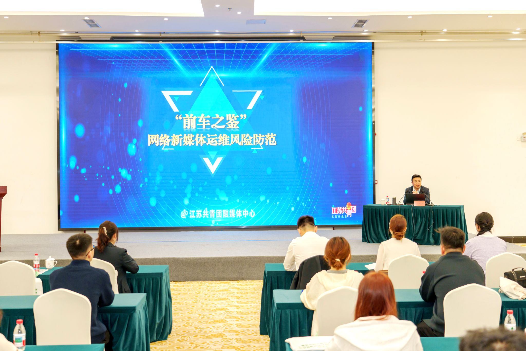 开班仪式后,训练营启动第一阶段专项培训。孙洪洋以《“前车之鉴”——网络新媒体运营风险防范》为题,结合实践案例,为学员阐述了共青团网络新媒体运维的原则、方法及注意点。镇江报业传媒集团(镇江日报社)产经融媒中心主任梁和峰围绕校园新闻报道,围绕“什么是好新闻”“报道什么”和“怎样报道”,鼓励同学们在新媒体时代守望初心、向新而行。校电视台副台长常明从视频创作的“道”“术”“器”“法”“诫”五个方面,系统解答了同学们在全流程视频创作中的疑问,展现了优秀视频作品的创作过程。