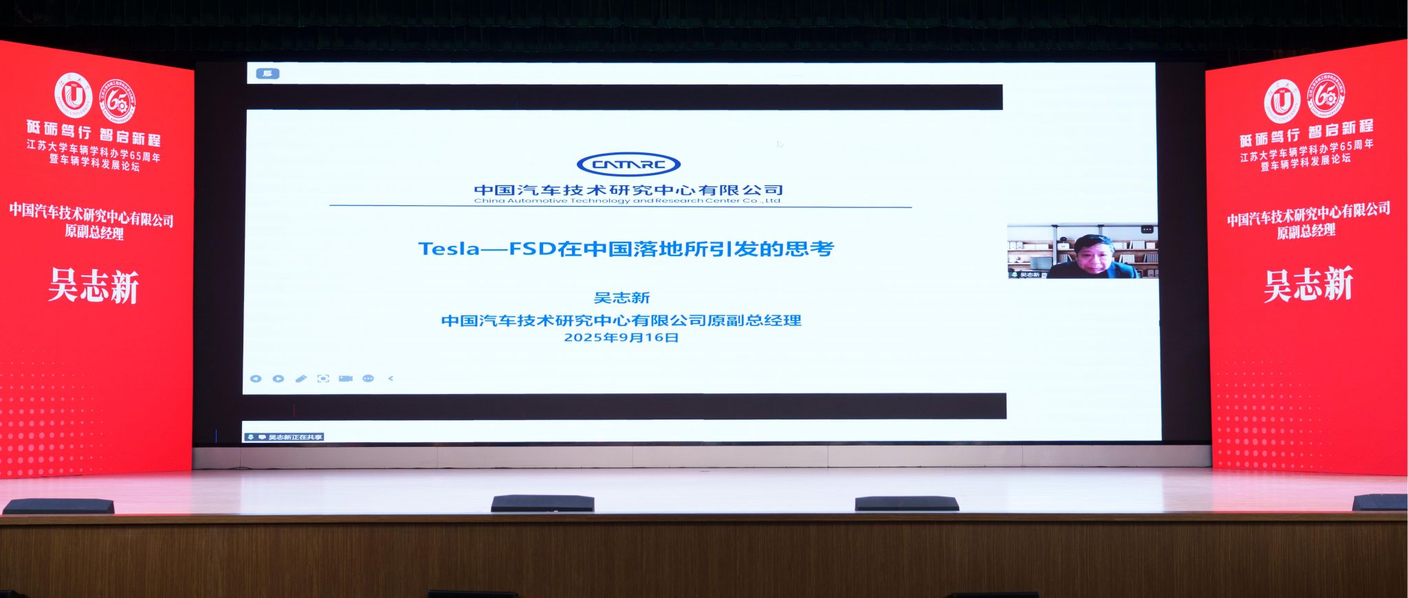 论坛上,工业和信息化部装备工业司原一级巡视员钱明华校友、中国汽车技术研究中心有限公司原副总经理吴志新校友、蔡英凤分别从中国汽车工业的发展现状与展望、Tesla-FSD在中国落地所引发的思考、beat365英国官网网站车辆学科建设与发展规划等方面作主旨报告。