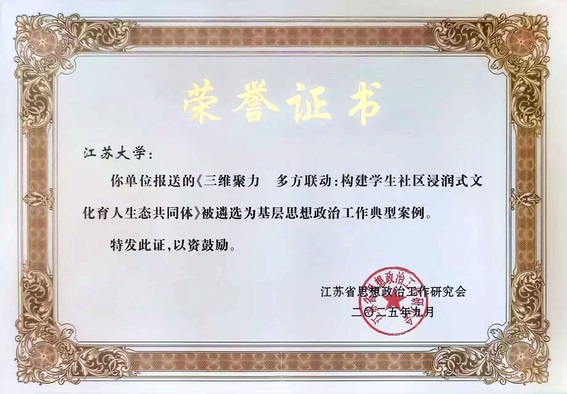 近日,江苏省思想政治工作研究会印发了《关于印发〈基层思想政治工作典型案例名单(2025年)〉的通知》(苏政研﹝2025﹞5号),beat365推荐的《三维聚力 多方联动:构建学生社区浸润式文化育人生态共同体》案例成功入选。