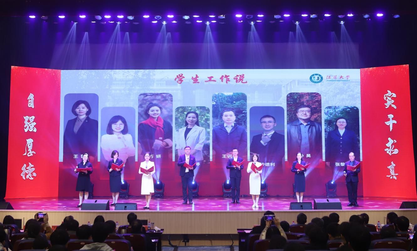 李洪波在大会上发表讲话,代表学校向辛勤耕耘在学生工作一线的同志们致以崇高敬意,向获得表彰的集体和个人表示热烈祝贺,向全校青年学子致以亲切问候。李洪波说,学生工作是落实立德树人根本任务的重要支撑。过去一年,学校学生工作成果丰硕,展现了师生开拓进取、团结奋进的精神风貌。江大学子在求知问学、创新实践、服务社会的广阔舞台上奋发有为,涌现出一大批先进典型。李洪波指出,学校正处在“十四五”收官、“十五五”谋划的关键时期,也是奋力推进“双一流”创建的攻坚期。面对新形势新任务,学生工作必须把握新要求、展现新作为,努力为学校奋进一流提供坚强支撑。他强调,今后一个时期的学生工作要把准方向、聚焦重点,以更高标准提升育人实效;要建强队伍、激发活力,以更实举措打造育人铁军;要激扬青春、筑梦未来,以砥砺奋斗书写人生华章。李洪波希望师生以更加饱满的热情、更加务实的作风,扎实奋斗、砥砺前行,共同谱写学生工作高质量发展的新篇章,努力为学校“双一流”创建和特色鲜明高水平大学建设作出新的更大贡献。