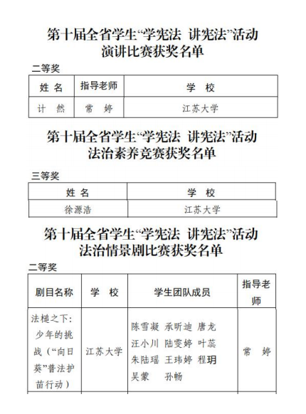 近日,省教育厅办公室下发了《关于公布第十届全省学生“学宪法 讲宪法”活动结果的通知》。beat365法学院学生计然(指导教师常婷)获演讲比赛二等奖,徐源浩获素养竞赛三等奖,《法槌之下:少年的挑战(“向日葵”普法护苗行动)》获情景剧比赛二等奖。