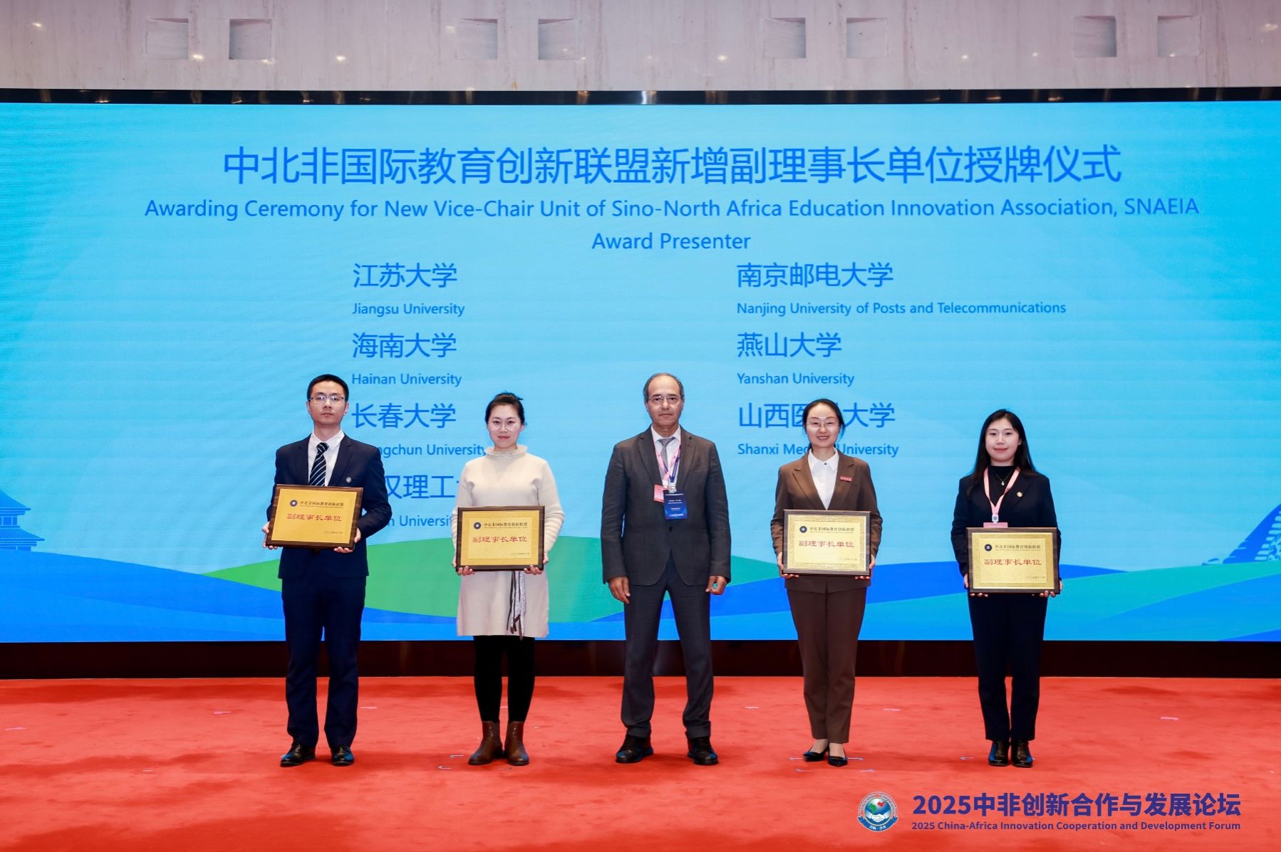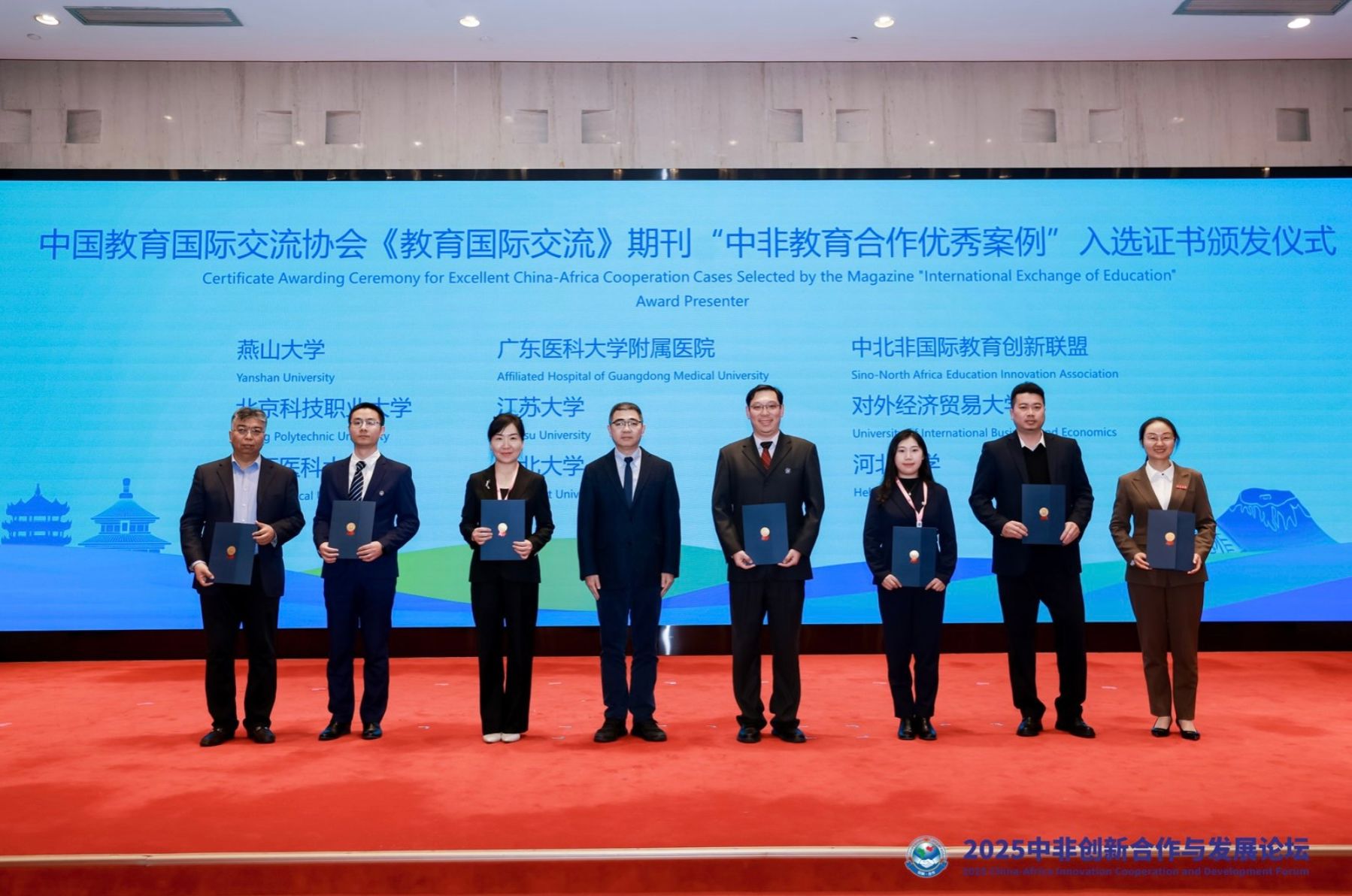 颁奖与授牌环节,beat365一项案例荣获中国教育国际交流协会《教育国际交流》期刊颁发的“中非教育合作优秀案例”。同时,beat365成为中北非国际教育创新联盟新增副理事长单位并接受授牌。(海外教育学院)