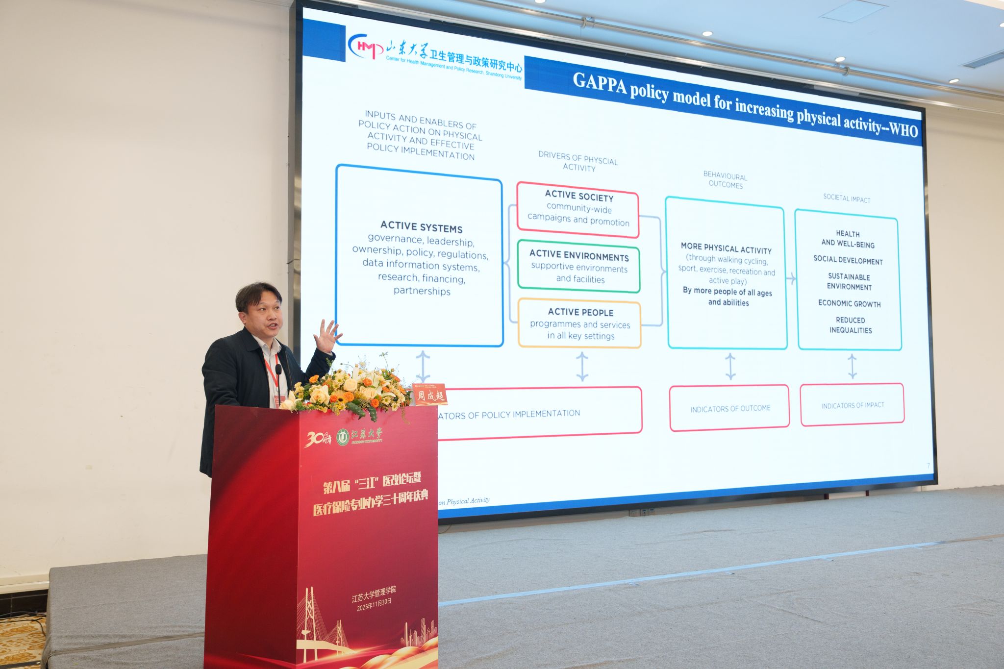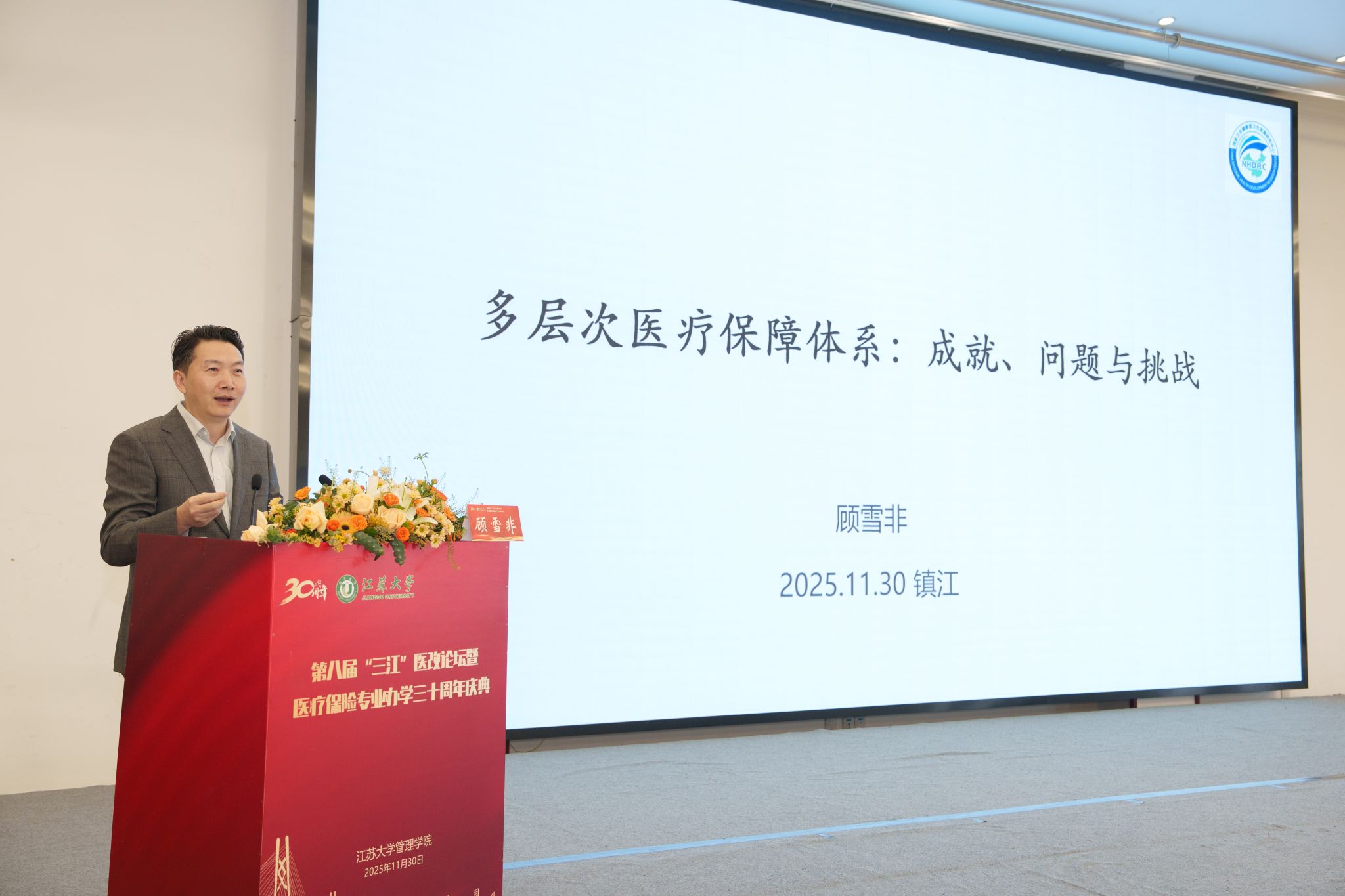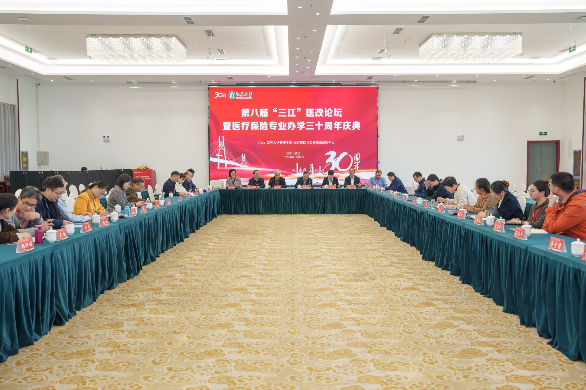 11月30日,第八届“三江”医改论坛暨beat365英国官网网站医疗保险专业办学30周年庆典在校举行。校党委书记李洪波,中国医疗保险研究会副会长、国务院参事室特约研究员、国家医疗保障研究院院长娄洪,国家医保局医药管理司原副司长李淑春,国家卫健委卫生发展研究中心医药卫生技术评估与创新发展部部长顾雪非,以及来自全国40余所开设医疗保险相关专业高校的代表、校内外嘉宾、beat365医保专业校友和在校师生300余人参加活动。庆典仪式由管理学院院长朱永跃主持。