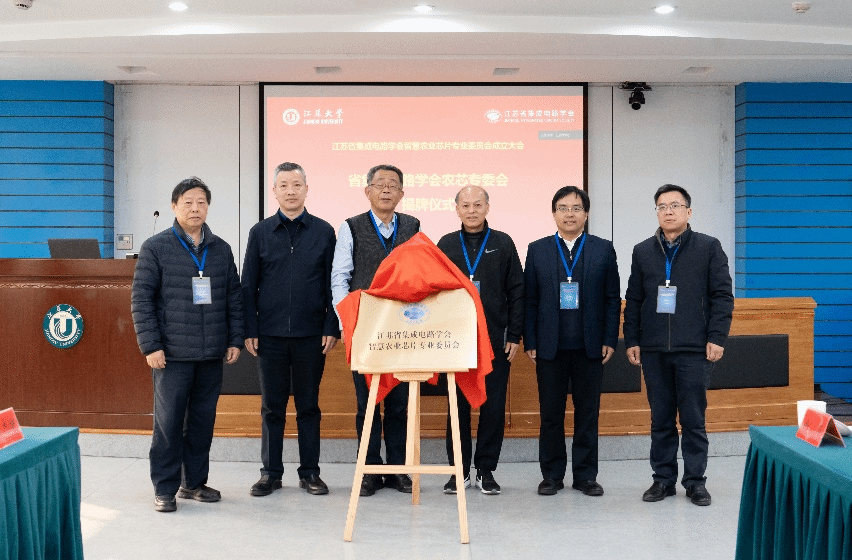 时龙兴、彭汉艮、颜晓红、王景全、沈克强、陈元平共同为“江苏省集成电路学会智慧农业芯片专业委员会”揭牌,时龙兴为主任、副主任委员颁发聘书。
