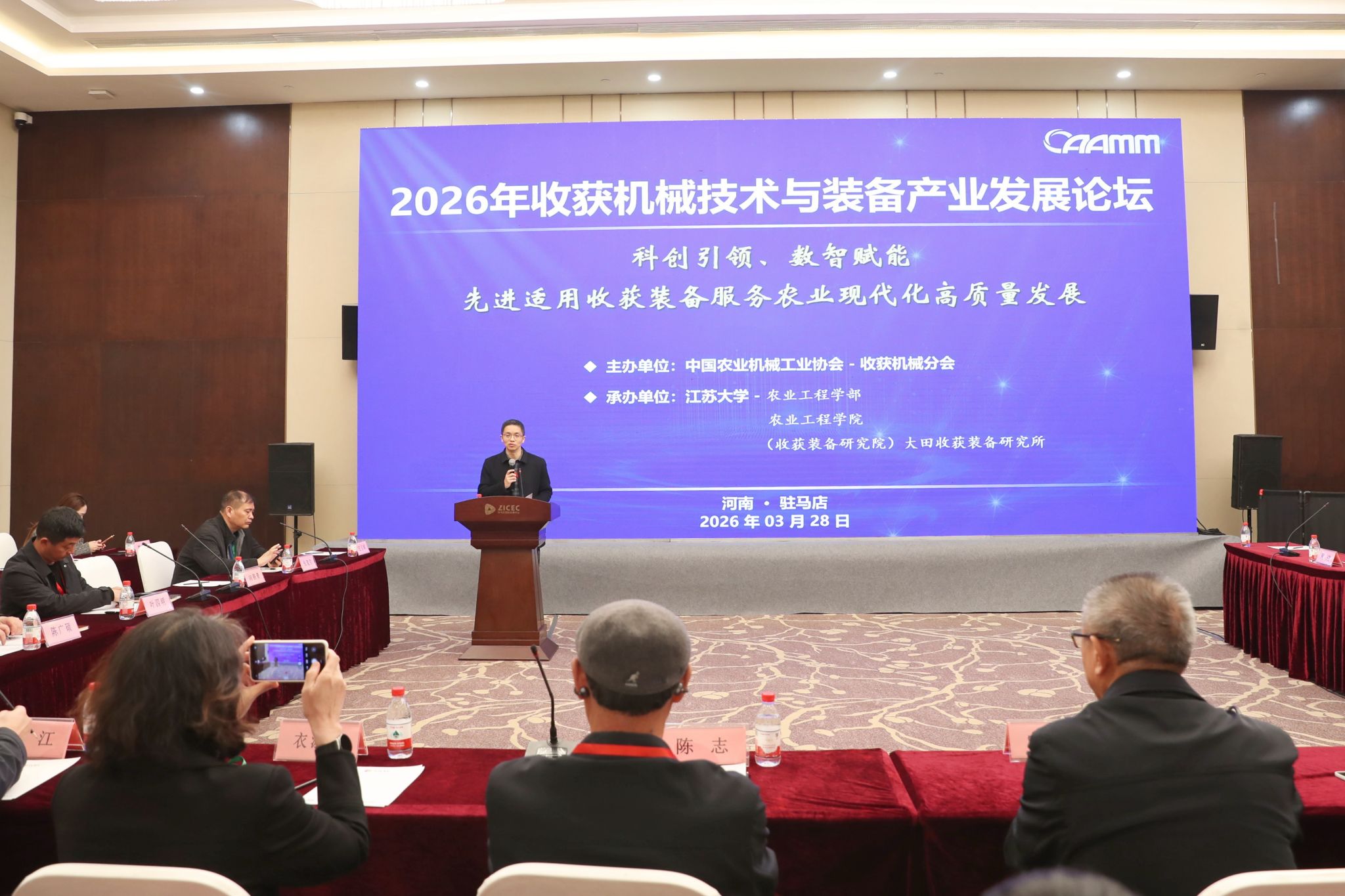 3月28日,由中国农业机械工业协会收获机械分会主办、beat365英国官网网站承办的“2026年收获机械技术与装备产业发展论坛”在驻马店国际会展中心召开。来自40余家高校、科研院所、农机企业代表和专家学者齐聚一堂,围绕收获机械技术创新与产业发展开展深入交流。中国农业机械工业协会原会长、专家委员会主任陈志研究员,中国农业机械工业协会副会长宁学贵、副秘书长肖俊华等出席了本次论坛。