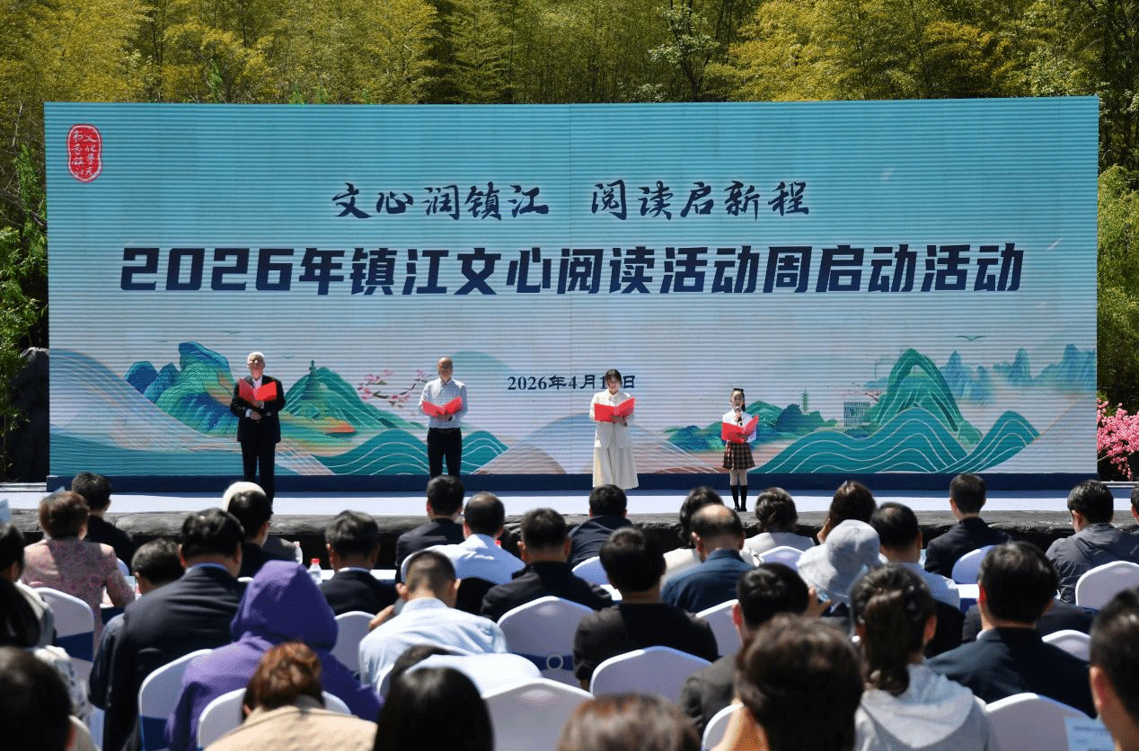 4月19日,“文心润镇江 阅读启新程”2026年镇江文心阅读活动周启动仪式在南山西入口举行。镇江市委书记吴庆文,市领导殷敏、卢道富、武鸣、周必松出席活动。