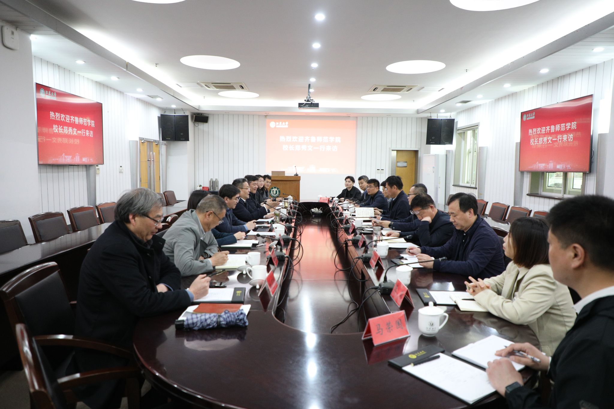4月23日,齐鲁师范学院院长郑秀文率队来校交流。校党委副书记杨道建接待了郑秀文一行。