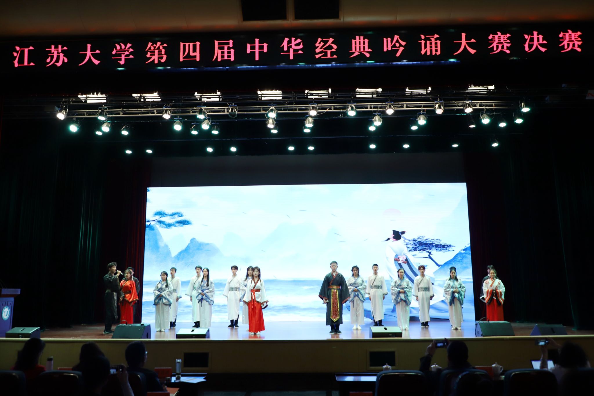 4月12日,由党委宣传部、工会、团委、文学院(语言文化中心)联合主办的第四届中华经典吟诵大赛决赛在小礼堂举行。医学院《颂橘》、文学院(语言文化中心)《月光下的中国》荣获一等奖。