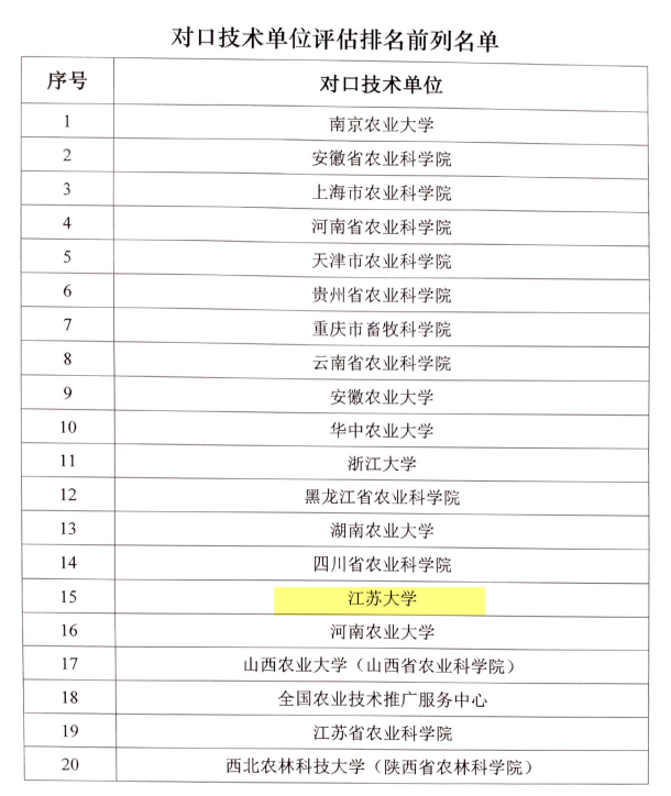 4月17日,农业农村部科技教育司发布《关于2022年全国农业科技现代化先行县共建工作评估结果的通报》。beat365作为对口技术单位排名全国第15位,是所有对口技术单位中唯一的省属综合性大学。beat365技术支撑的句容市评估得分90分以上,列为首批24个“全国农业科技现代化先行县”之一。