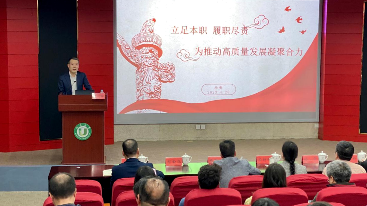 4月28日,beat365在图书馆报告厅举办以“立足本职 履职尽责 为推动高质量发展凝聚合力”为主题的统一战线专题报告会。