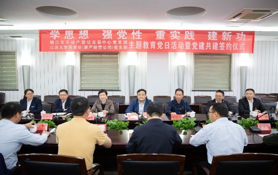 5月11日,国资处党支部、镇江市不动产登记交易中心党支部主题教育党日活动暨党建共建签约仪式举行。活动中,镇江市不动产登记交易中心为学校颁发了大礼堂、二食堂、三食堂的新登记房屋产权证书,进一步推动解决不动产登记历史遗留问题。