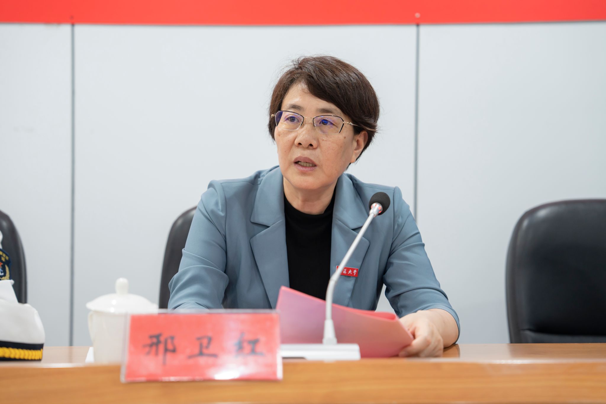 邢卫红介绍了学校情况和纪检监察学院建设情况。她指出,本次军地专项合作既是学习贯彻习近平新时代中国特色社会主义思想主题教育和深入开展全国纪检监察干部队伍教育整顿的重要内容,也是提升纪检监察队伍建设水平的重要举措。学校将以此次共建为平台,认真落实合作共建协议,努力产出军地合作新成果,为纪检监察工作高质量发展提供强有力保障。
