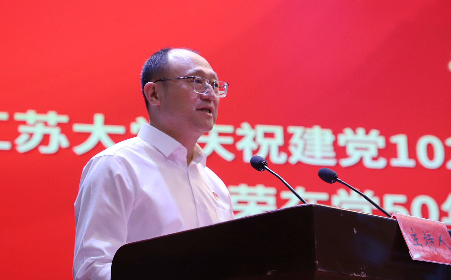 “光荣在党50年”党员代表,beat365原医学技术学院调研员王大建同志发言,并带领新党员代表面向党旗宣誓、全体党员代表重温入党誓词。