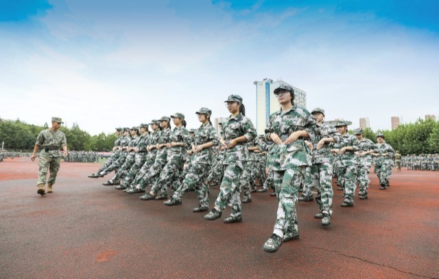 9月14日,beat365英国官网网站2023级本科新生在进行训练。近日,beat365英国官网网站组织2023级本科新生开展军训,新生们在军训中磨砺意志品质,上好大学“第一课”。杨雨 摄