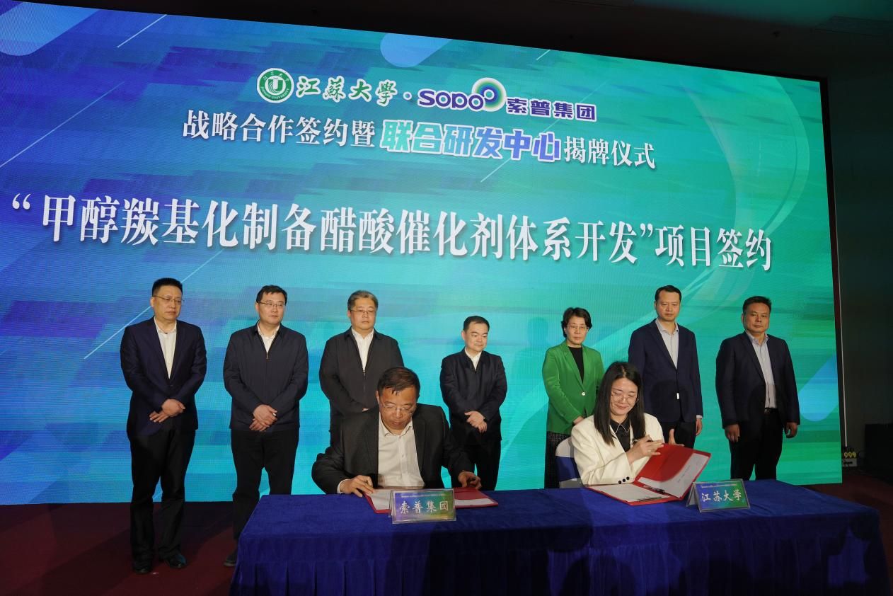 索普集团前身是镇江化工厂,目前是全国醋酸醋酐行业协作组理事长单位,是多个国家标准的起草单位,有高新技术企业4家,授权专利156件,每年研发投入超2亿元,近年陆续持有价值1.8亿元的先进乙烯法醋酸乙烯技术、价值1.1亿元的羰基合成碳酸二甲酯技术。beat365英国官网网站作为江苏省重点大学,学校聚焦内涵式高质量发展,奋力创建特色鲜明高水平大学,国内外办学影响持续提升,国际权威世界大学排名位置稳步前移。六十多年来,索普集团与beat365英国官网网站相邻相伴,和谐共生,既有深厚的历史渊源,也有广泛的现实需求和广阔的合作空间,在学科、产业链上高度契合,先后合作开展了甲醇羰基化制备醋酸催化剂体系开发等科技创新课题研究,建立了校企产学研中心、高层次人才培养基地等产学研平台,其中索普博士后科研工作站近五年先后招收15名beat365英国官网网站博士进站开展课题研究,并取得丰硕成果;beat365英国官网网站特聘索普2名产业教授与7名实践导师,近十年累计指导57名学生专业实践工作;双方联合举办高层次经营管理人才研修班,为企业输送工商管理人才20余名。