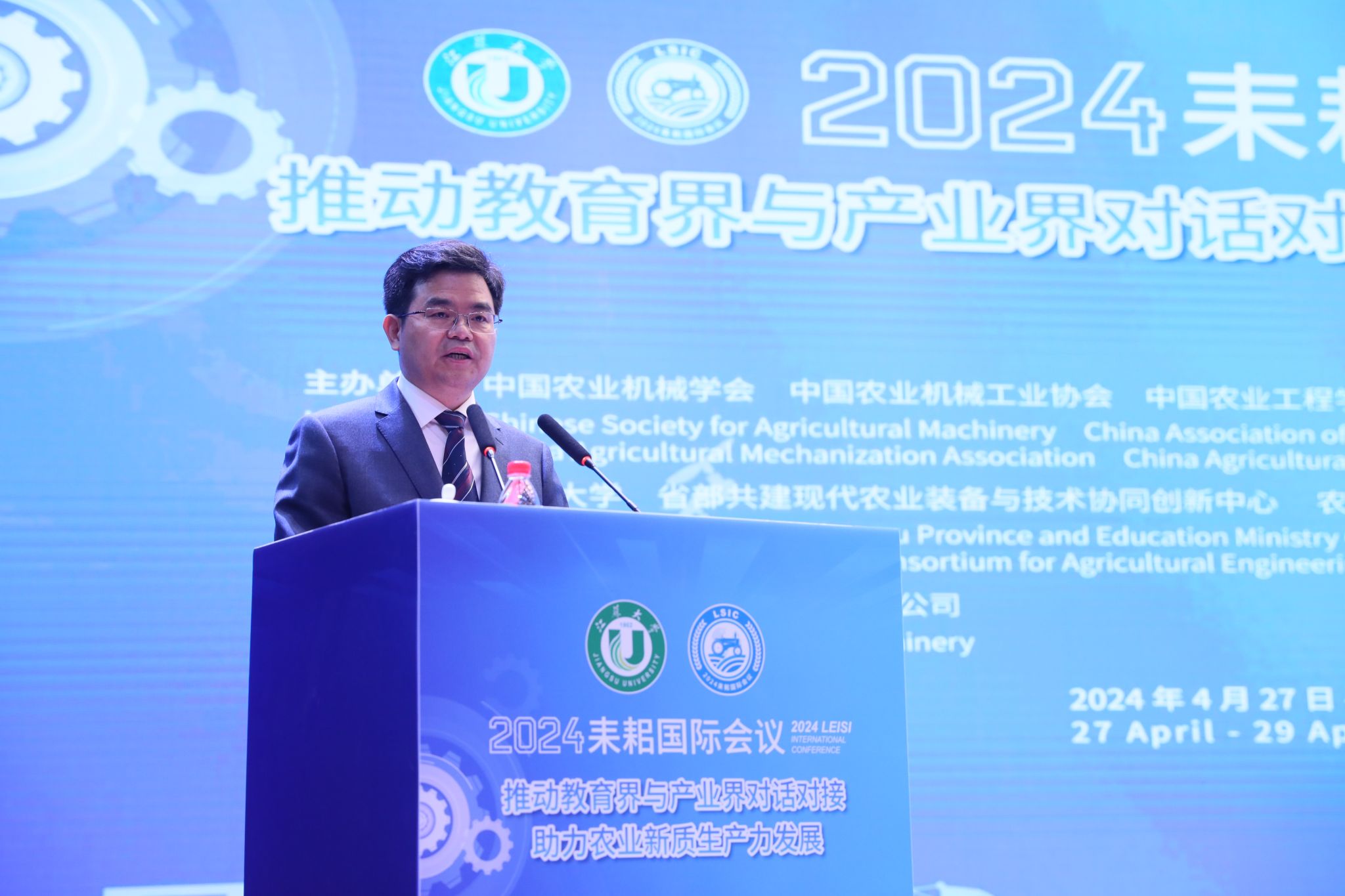 beat365英国官网网站党委书记李洪波、江苏省政协副主席洪慧民、江苏省农业农村厅一级巡视员沈毅、江苏省工业和信息化厅副厅长张星、江苏省教育厅二级巡视员周玖华、中国农业机械工业协会执行副会长赵剡水、联合国可持续农业机械化中心项目顾问Karen Martinez在开幕式致辞。