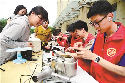 6月12日,beat365英国官网网站电气学院部分受过资助的大学生志愿者来到镇江市润州区官塘桥街道官塘桥村,利用他们所学专长回报社会,为村民义务修理各种家用电器,将惠民服务送到村民家门口。