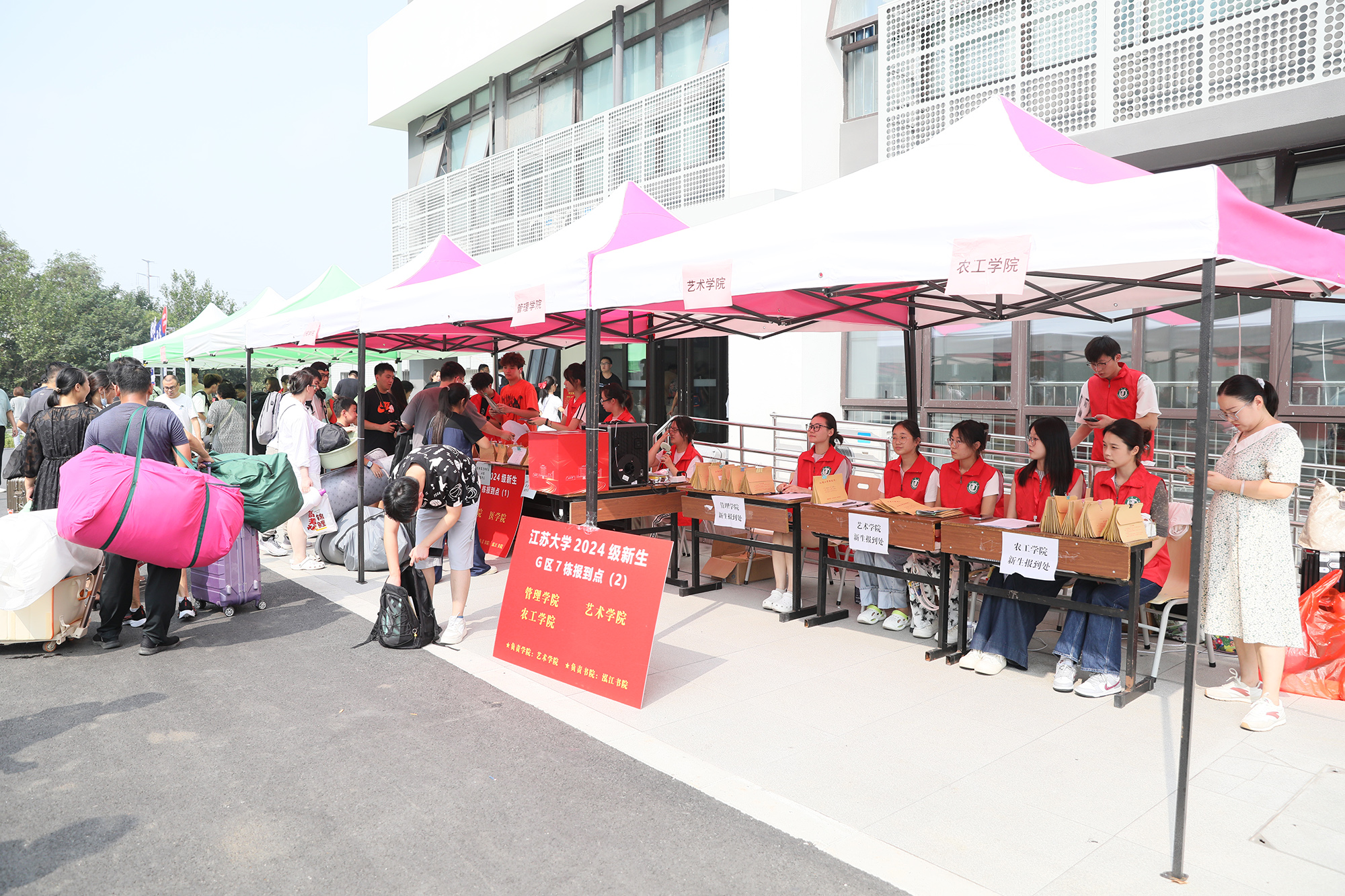 在镇江站北广场负责接站的教师周德帅介绍,为方便新生顺利来校报到,学校每年在镇江高铁站、汽车站均设置接站处,安排专人跟车将新生及家长“点对点”接到校内宿舍区。
