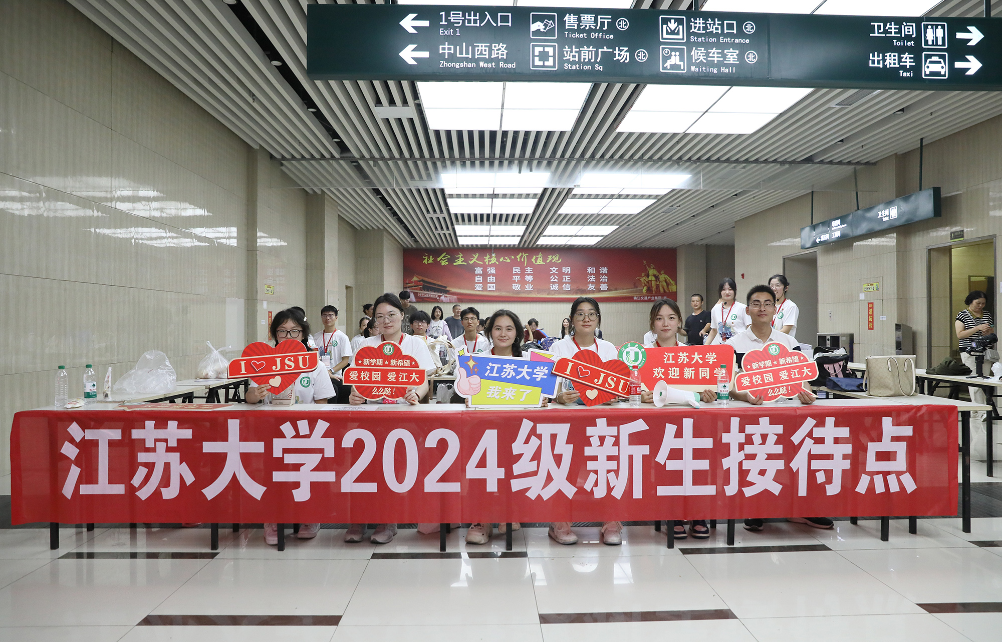 “这边,这边,beat365英国官网网站新生往这边走。”在镇江站和镇江南站的新生接待点,负责引导新生的志愿者们,手举“beat365英国官网网站”标识牌,让2024级新生一出站就能看到“家”的方向。