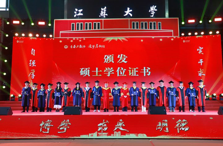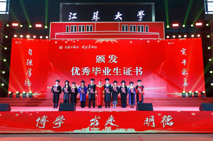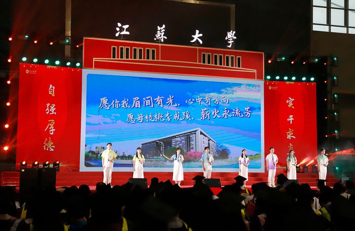 典礼现场,师生代表带来情景朗诵《一路生花》、歌舞《祝我们前程似锦》等精彩节目,深情回望江大时光与青春岁月。典礼尾声,全场起立,齐声合唱校歌《百年辉煌向未来》,两只象征美好的“金凤凰”于场馆上空盘旋,将气氛推向高潮。