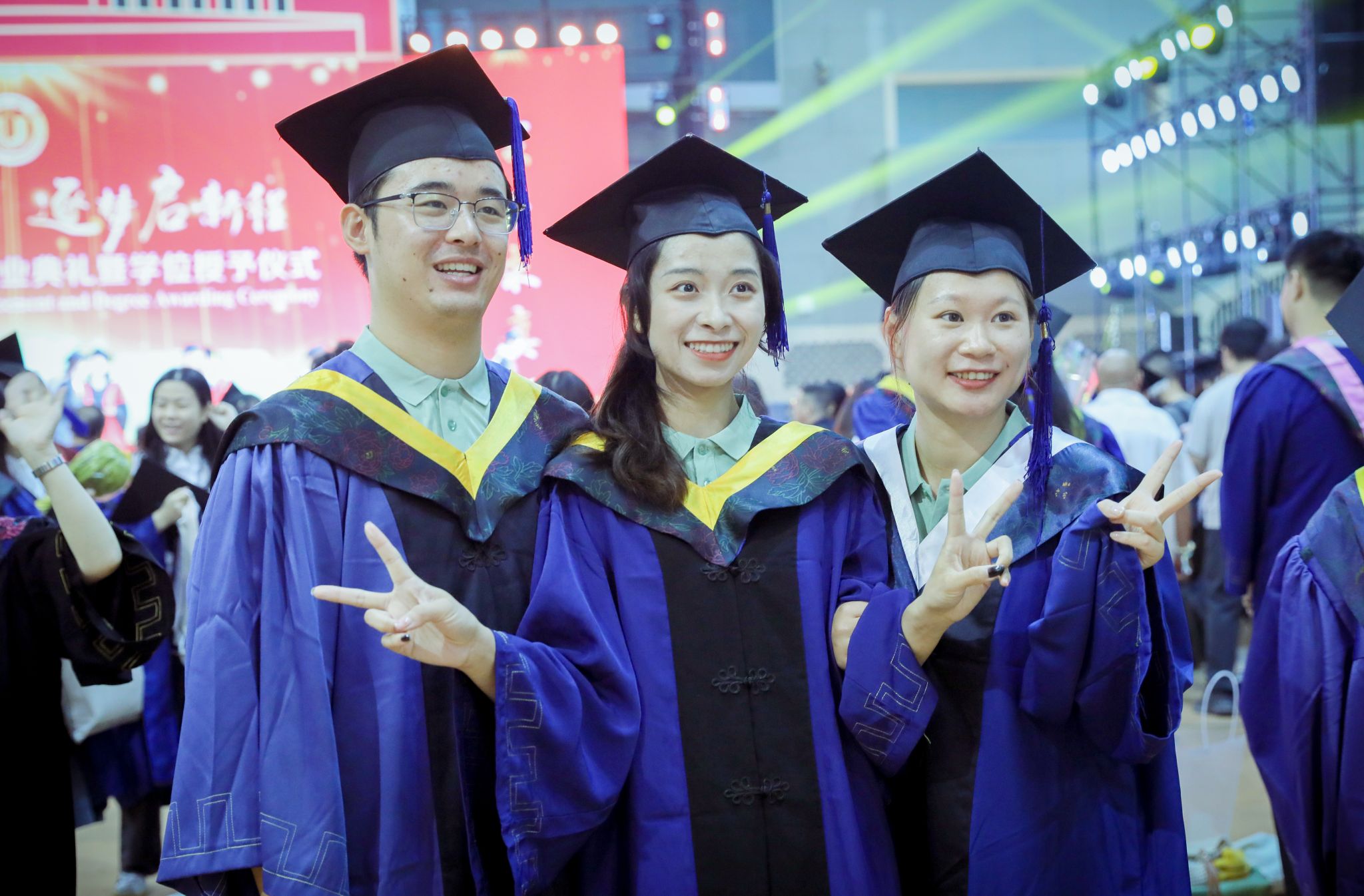 典礼开场前,毕业生代表倾情献唱《凤凰花开的路口》《第一天》《本草纲目》《大中国》等歌曲,暖场氛围温情洋溢。“毕业快乐”的欢呼声瞬间点燃现场热情。