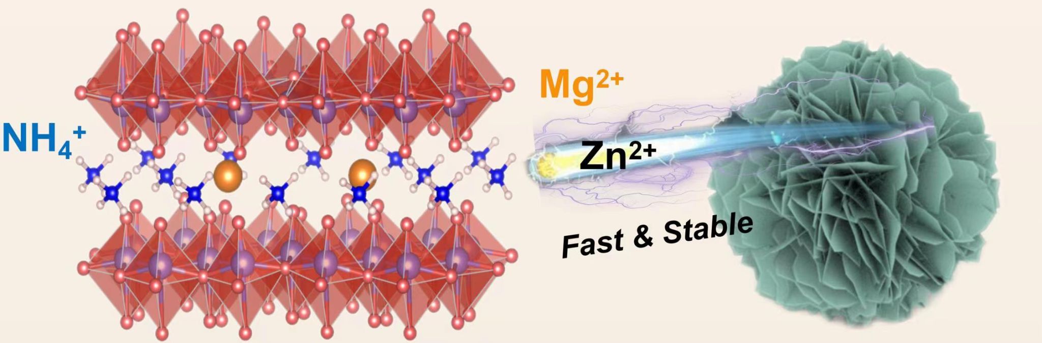 近期,水系锌离子电池作为最具潜力的锂离子电池替代品之一,受到广泛关注。在水性锌离子电池的设计中,阴极材料是限制电池整体容量的关键部件。层状钒酸铵材料由于其小分子量和大离子半径而表现出显著的质量比容量和离子传输速率,而Zn2+和V-O间的强静电相互作用以及N-H.…O键的脆弱离子键阻碍了它们的发展。在该工作中,刘云建团队创新性地设计了具有3D花瓣状形貌的Mg2+掺杂NH4V4O10正极材料,以降低迁移能垒并抑制胺的溶解。
