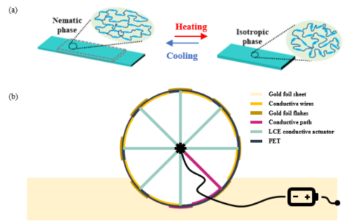 图1. 液晶弹性体驱动机理与Feynman软体机器人结构