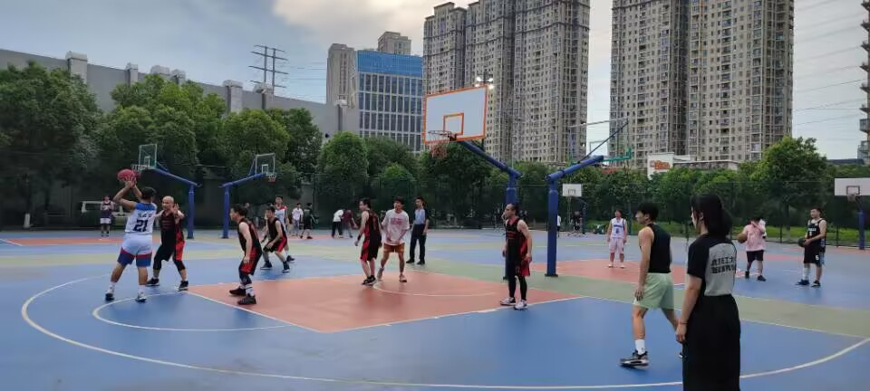 本次篮球比赛由教职工篮球队和毕业生篮球队参与比赛,在比赛中,场上队员都奋力奔跑、拼力争夺,每个队员都尽自己最大的努力为队伍争取得分数。比赛过程十分精彩,双方抢球、断球、防守、进攻;严守硬对、激烈争夺、默契传球、完美配合。